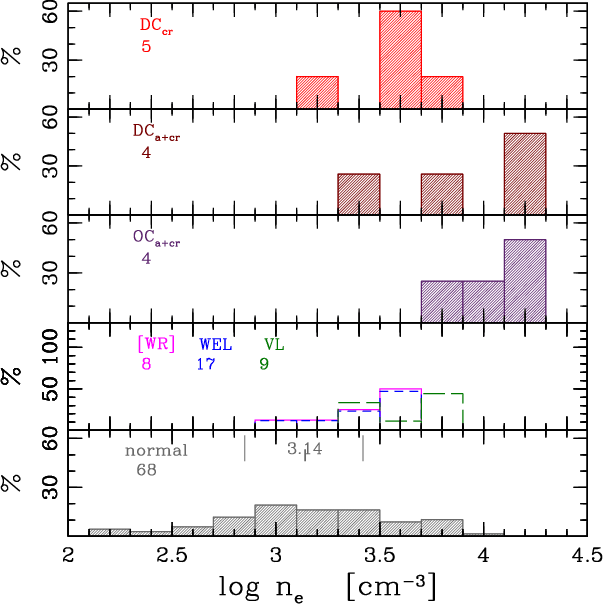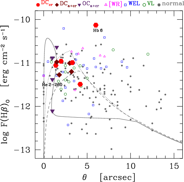 - The analysis is hampered by the Blöcker (1995) tracks being applicable directly only to PNe with H-burning nuclei, i.e., not to [WR] type CSs.