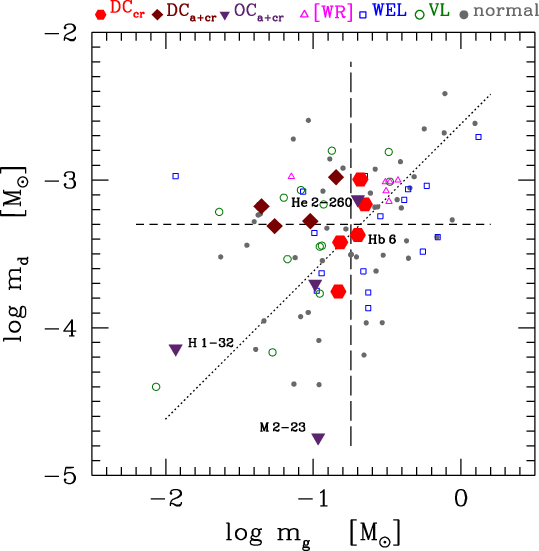 - The remaining dual-dust chemistry PNe on their list belong to [WR] type (M 2-31) and WEL PNe (H 2-11).