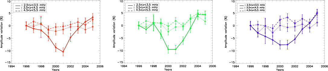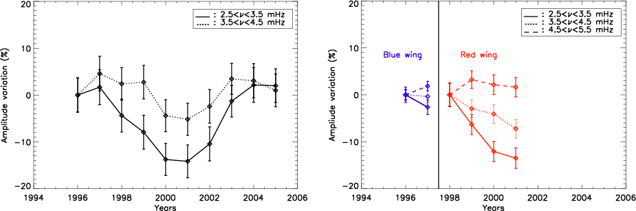 2 per cent for the intensity observations. Over the range of 4.5 mHz