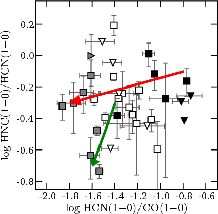 Methods. The changing ratios of the HCN (1-0), HNC (1-0),