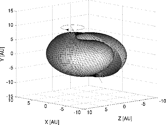 - bending of the HCS. In calculations with low tilt heliospheric current sheet, the current sheet was found to avoid the stagnation point by bending into the northern or the southern parts of the heliosheath, with the shape of the heliopause becoming asymmetric in result (Pogorelov et al. 2004). If the solar cycle would be taken into account, the HCS would extend to all latitudes and so could not avoid the stagnation point in this way. The effect on the shape of the heliopause is then in doubt.