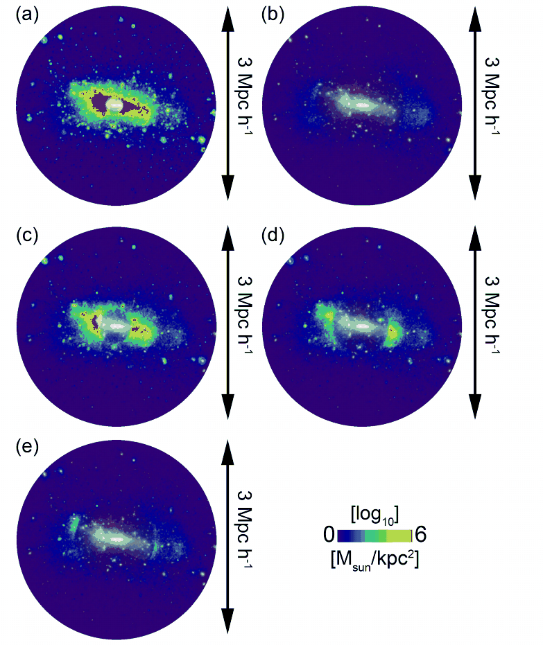 distribution of the stellar component in the galaxy cluster simulation.