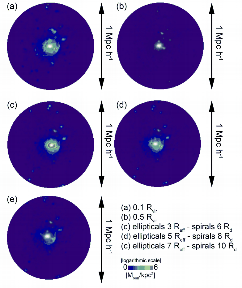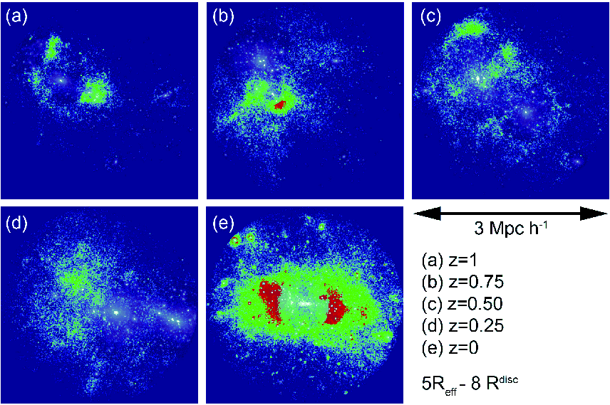 colourmap) for different redshifts for the galaxy cluster system.