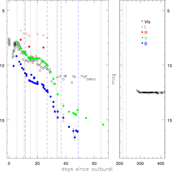 1 day after maximum to late April, 2009. In June 2009 the object was found too faint for continuing the SOAR observations.