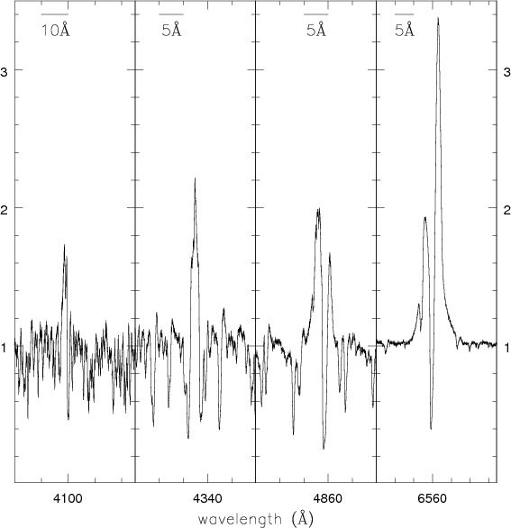 emission lines in the epoch 5 spectrum, due to the anomalous Balmer