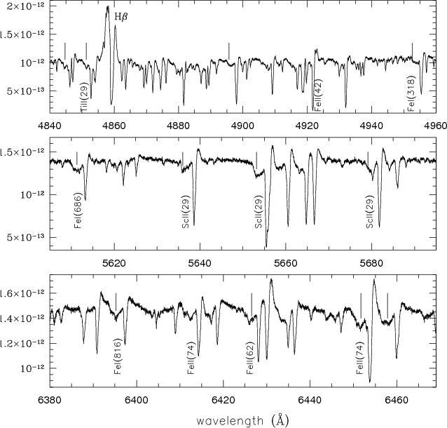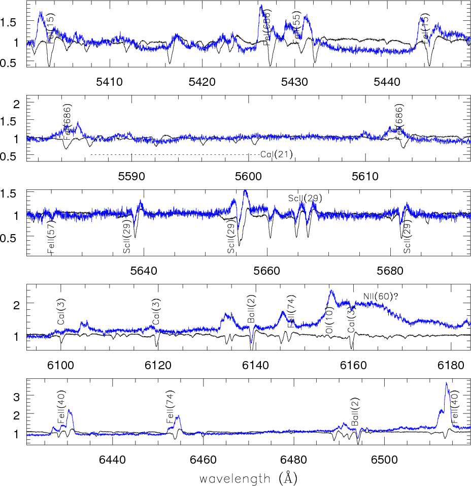 - Epoch 1 and 3 spectra do not show the 6300 [OI] line, while the OI(4) and (1) multiplets are partly in absorption and, therefore, difficult to measure reliably.