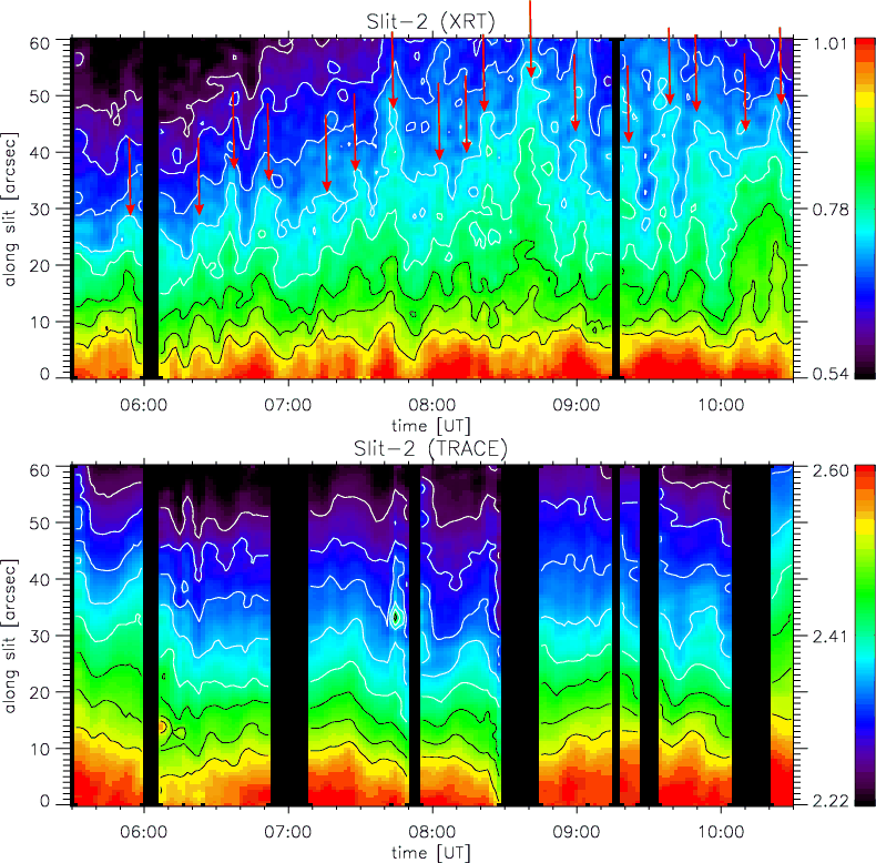 Methods. We use the observations from XRT/Hinode and TRACE to