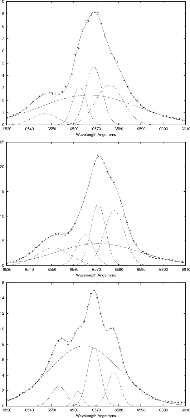 typically five components. Figure 2 of Schmidtobreick and Blundell (2006) also shows clear absorption notch structure on the blue side of the H