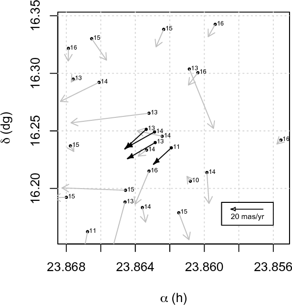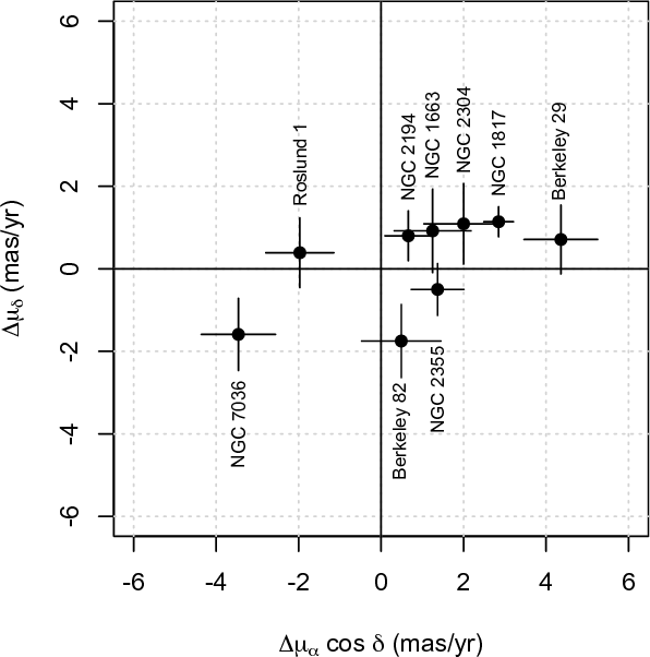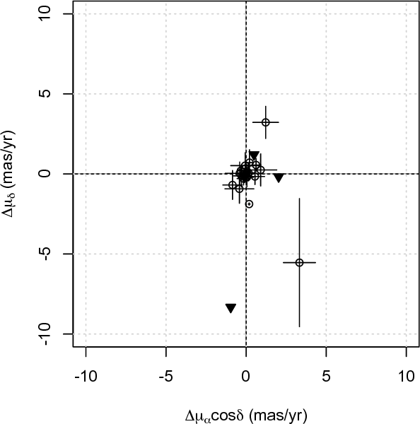 ascension. Strong offsets in both proper motions components were also
