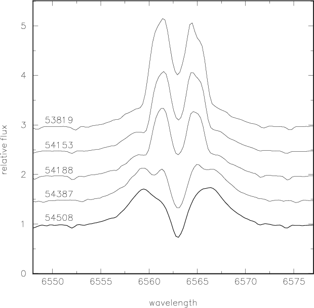 4.5 km s-1 per pixel). Wavelength coverage is about 100 Å around H