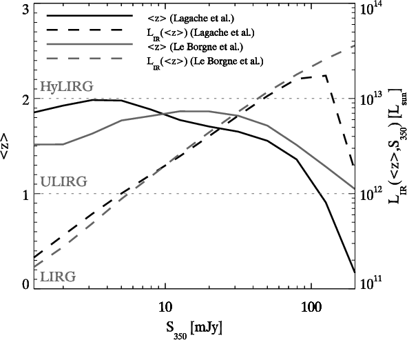 (LIRG and ULIRG) and their redshift distributions, or the mean