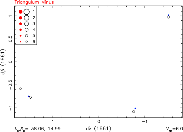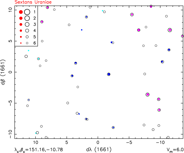Of all this information our machine-readable version of Hevelius' catalogue only retains the sequence number in Brahe, and the magnitude and ecliptic position according to Hevelius.
