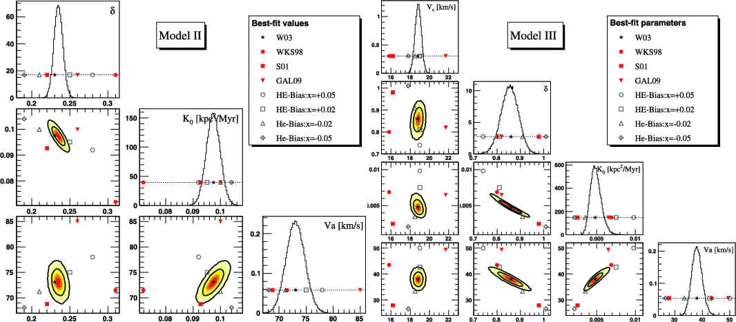 Finally, the starting point of the paper was a comparison between systematic uncertainties (generated by uncertainties in the input ingredients) and statistical uncertainties for the values of the transport parameters. That the former can be larger than the latter shows that many efforts are still needed in CR physics, especially for the production cross-sections, before one can take full advantage of any statistical analysis, as performed in Papers I and II with an MCMC technique. Some of these issues may be resolved as new data on cosmic-ray nuclei are being released ( CREAM, PAMELA, TRACER).