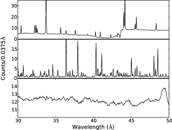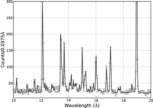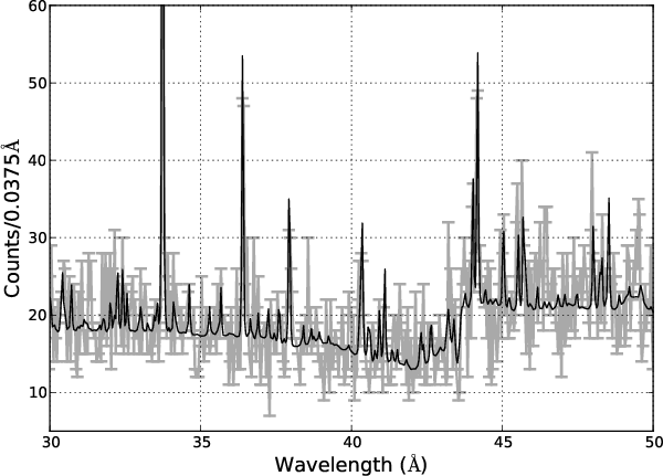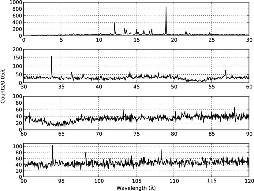 At X-ray wavelengths AU Mic has been observed many times. The first Chandra observation provided the highest resolution spectrum, but was limited to the wavelength range below 25 Å (Linsky et al. 2002).