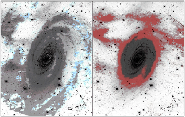It is also remarkable that both HI and GALEX emissions extend across the entire disk of M 81 well beyond its optical cut-off, partially overlapping the north-western part of Arp's loop (see also Gil de Paz et al. 2007; Thilker et al. 2007). This was also confirmed by the analysis of HST CMDs which revealed the M 81's stellar disk population where GALEX and far-infrared emissions overlap (Gogarten et al. 2009).