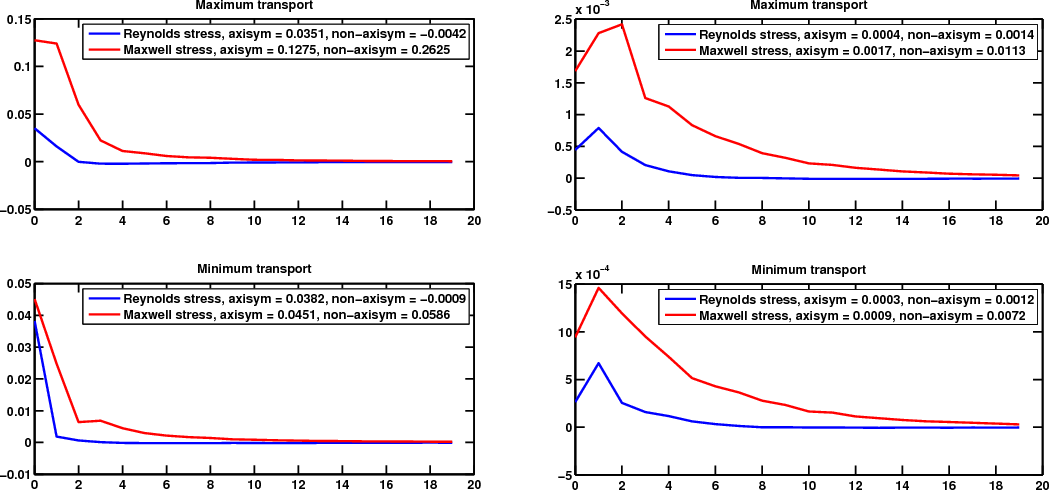 to the Reynolds and Maxwell stresses) from the largest dissipation