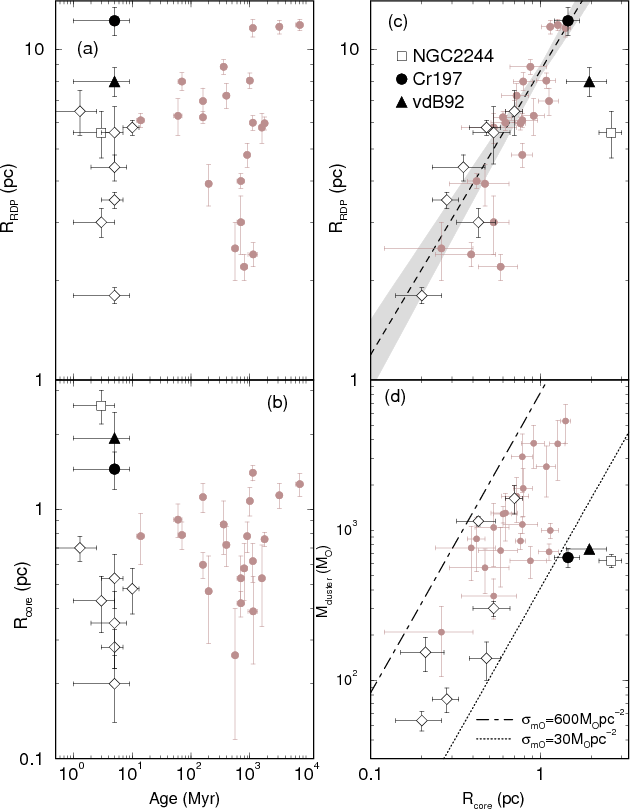 few 107 yr), in which an irregular RDP cannot be represented by a cluster-like profile