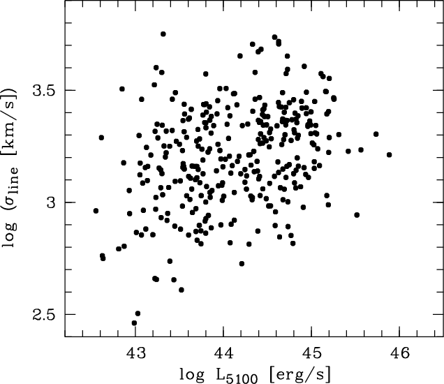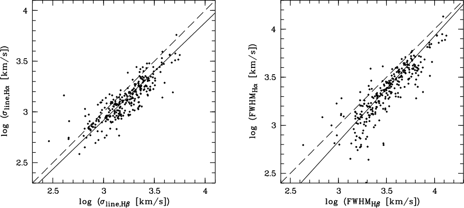 and line widths for different broad lines in the same spectrum (Kollatschny