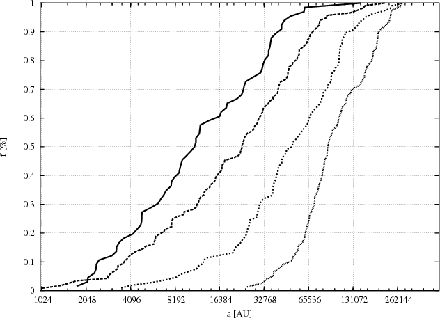 we established that the inner edge of the cloud - defined as the 5% mark in the cumulative semi-major axis distribution -