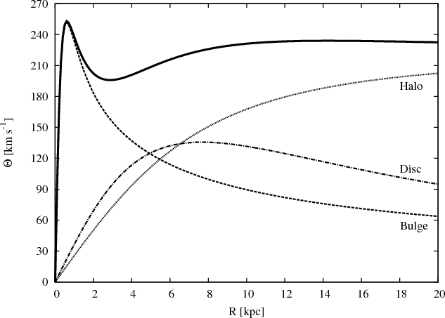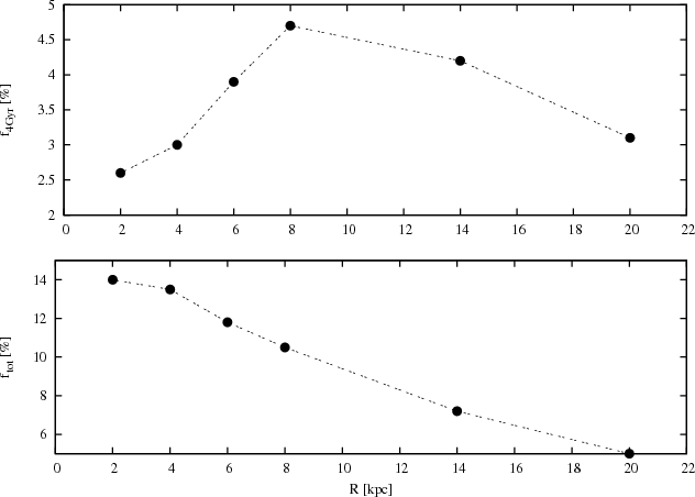 various parts of the disc of the Galaxy, starting at 2 kpc up to
