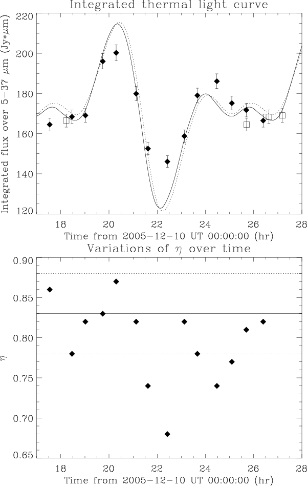 - However, small discrepancies between the synthetic and observed thermal light curves could result from shape uncertainties on the c axis (north/south direction), projected shadows due to local topographic uncertainties, and roughness inhomogeneities as mentioned above.