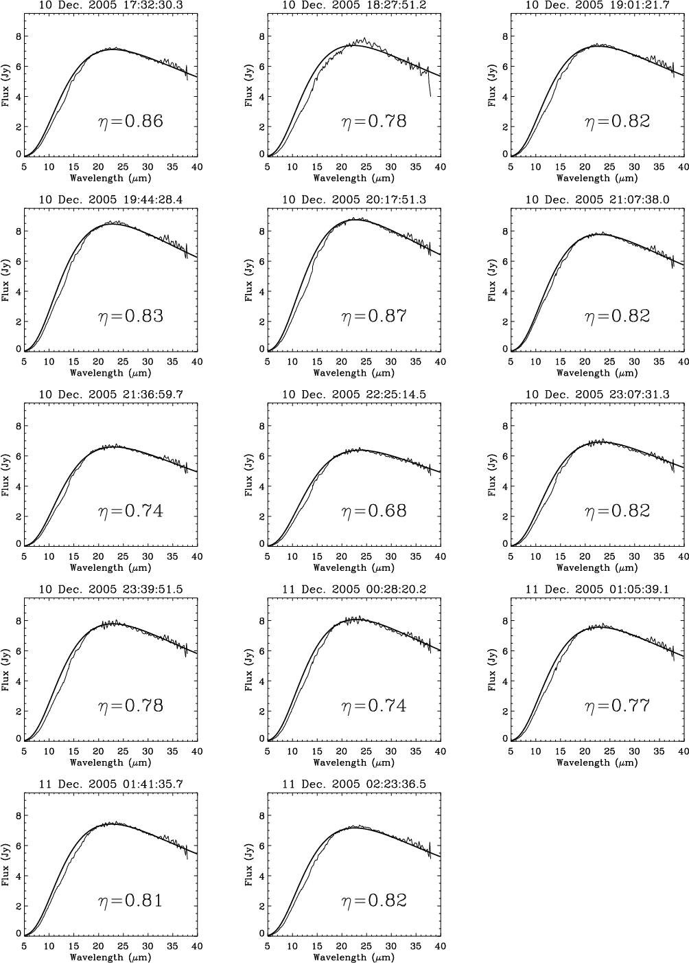 This work is based on observations made with the Spitzer Space Telescope, which is operated by the Jet Propulsion Laboratory, California Institute of Technology under a contract with NASA. We thank the SST ground system personnel for their prompt and efficient scheduling of the observations. We are grateful to I. Belskaya for making her results available to us in advance of publication.