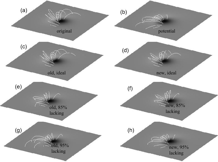 - ``Preprocessing'' of the observed vector field that approximates the physics of the photosphere-to-chromosphere interface as it transforms the observed, forced, photospheric field to a more realistic approximation of the near force-free field in the upper chromosphere,