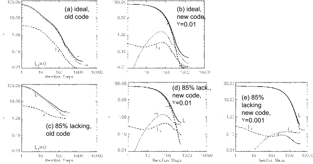 For the old code the inconsistency in the boundary data leads to significant deviations from the force-free L1 and solenoidal condition L2. Computations with the new code lead to significantly better agreement