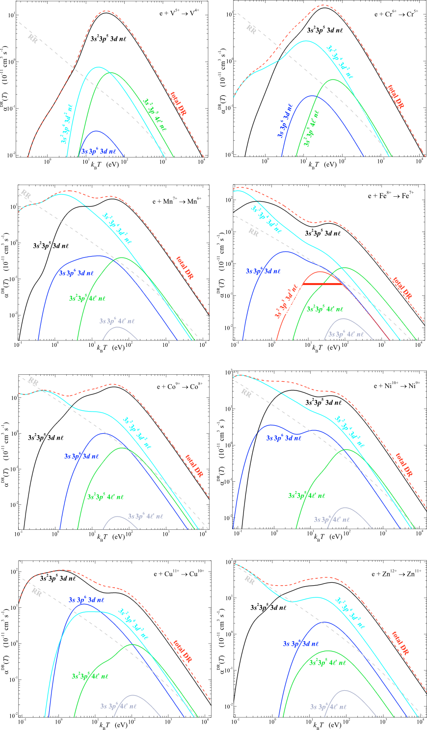 Lastly, we list the DR fitting coefficients for each ion, as described by Eq. (5), in Table 8. The RR fitting coefficients of Eq. (6) are listed in Table 9.