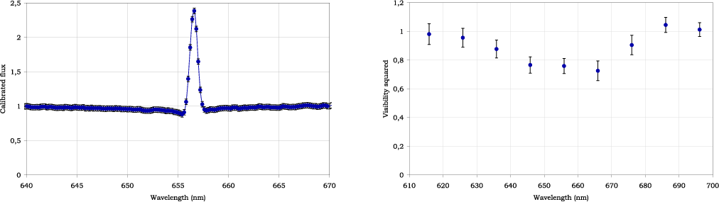 the VEGA spectrograph (Mourard et al. 2009) installed at the CHARA Array (Brummelaar et al. 2005). This unique combination of spectral and spatially resolved information allowed us