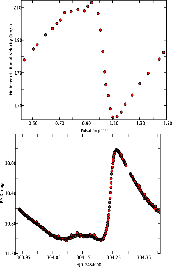 Figure 1: HARPS correlation heliocentric radial velocity curve and PAIX light curve of S Arae. |