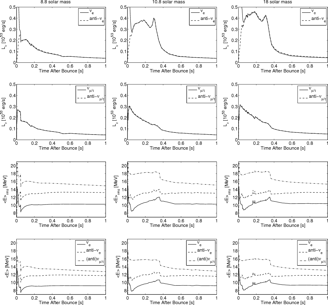 behavior of the neutrino luminosities and mean neutrino energies. The