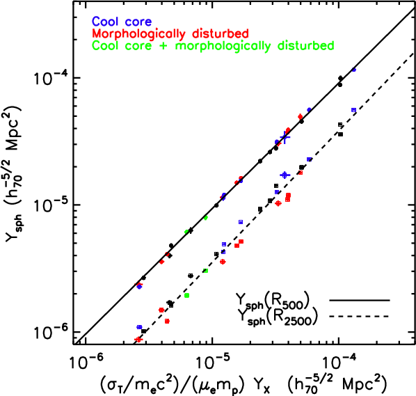 which is directly related to the Sunyaev-Zel'dovich (SZ) effect signal. From the low scatter of the observed