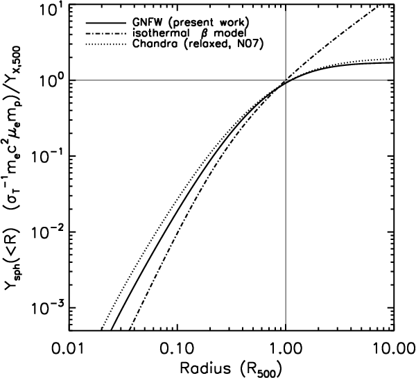 proportional to the gas thermal energy, and the cylindrically integrated quantity,