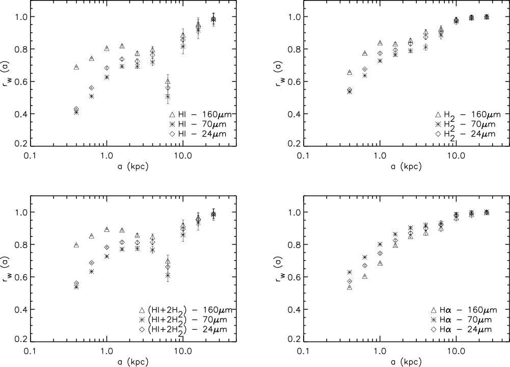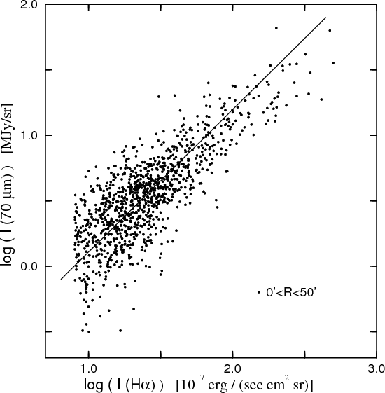 of neutral gas, and warm dust emission with that of ionized gas. The H