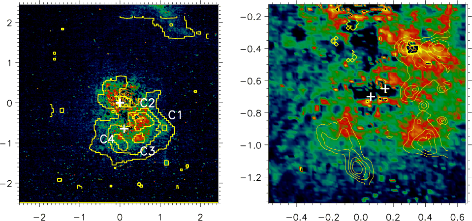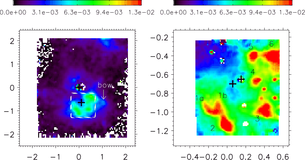Results. Several spatially distinct flows - some with a bow shock structure - appear within 1