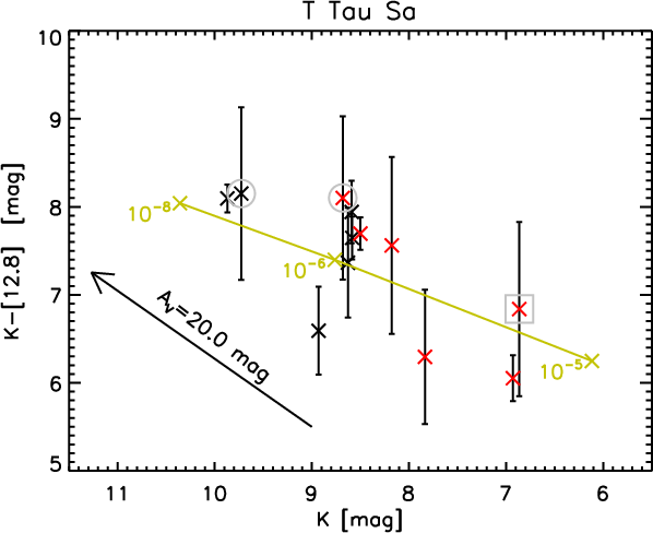T Tau S was shown to be strongly variable at near- and mid infrared wavelengths by Ghez et al. (1991), who detected a