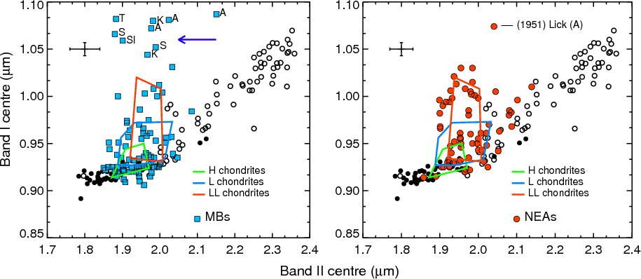 - We have not included the high slope of asteroid (1951) Lick to compute the mean value for NEAs, as it is an extreme case (Brunetto et al. 2007).
