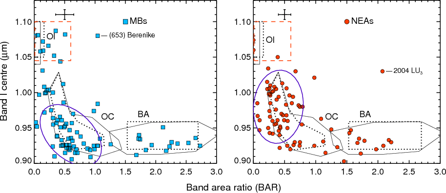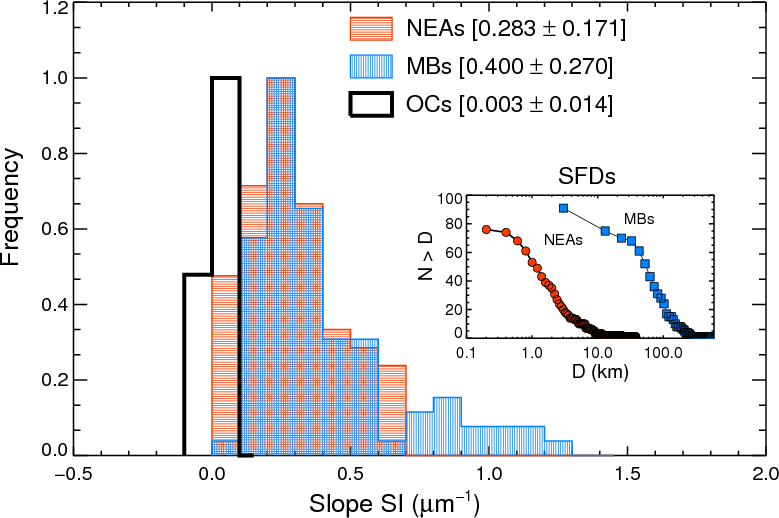 spectra of NEAs, MBs, and OCs, that are used to infer the mineralogical