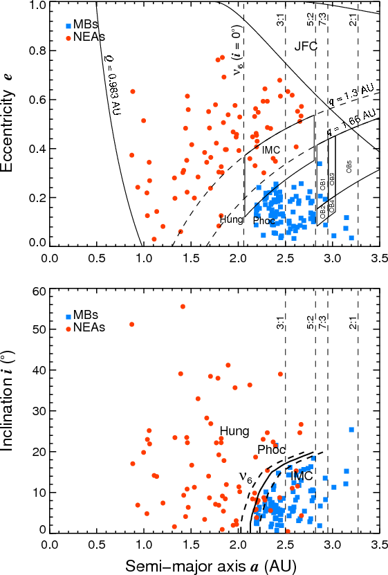 - We have to point out here that the IMC result presents some contamination, as there are a number of Mars-crossers in our sample of NEAs.