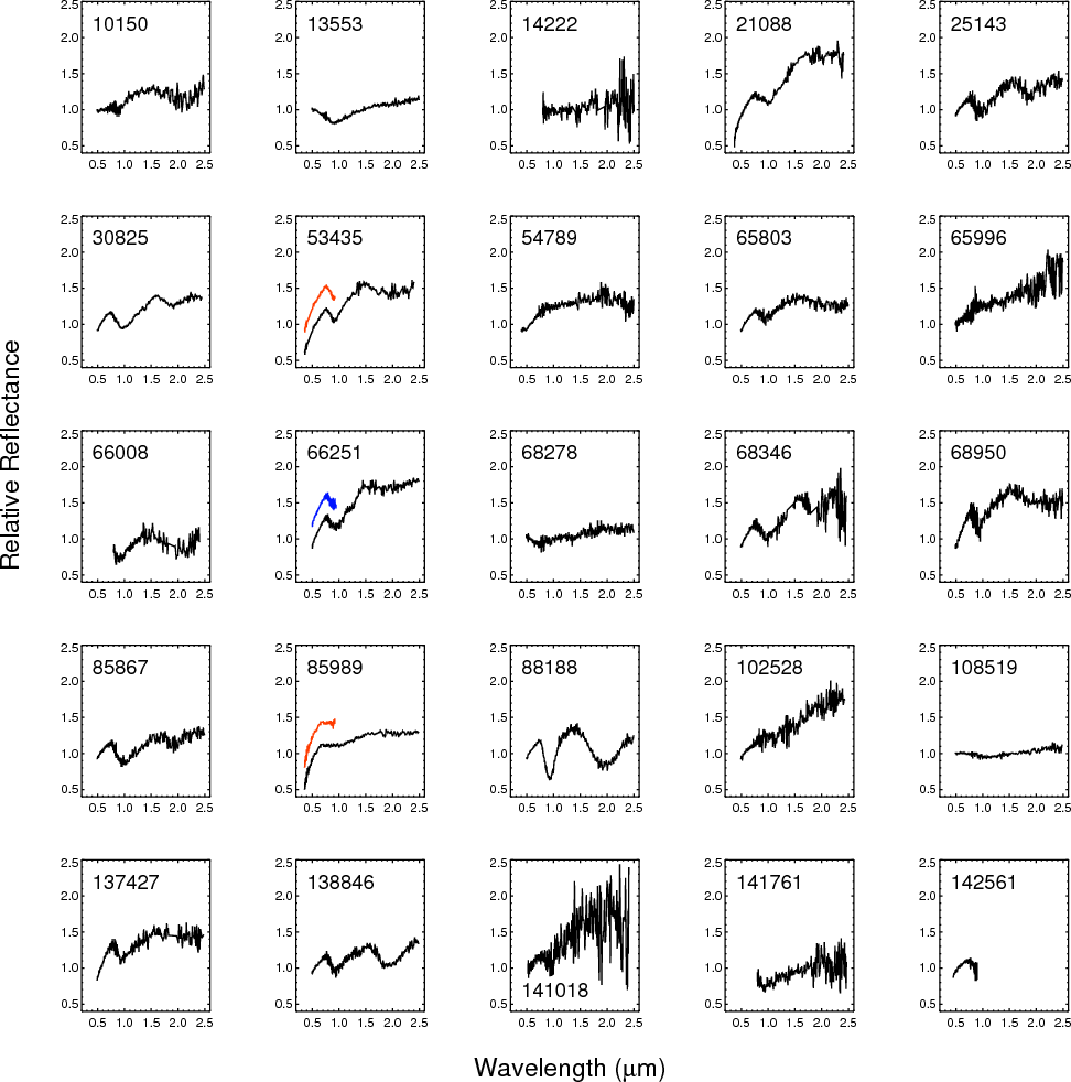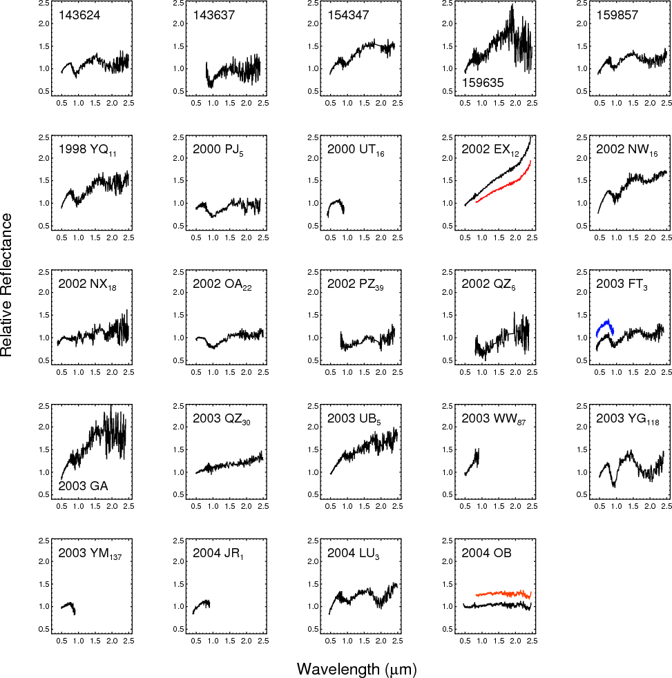 spectra of a total of 74 near-Earth asteroids (NEAs) and