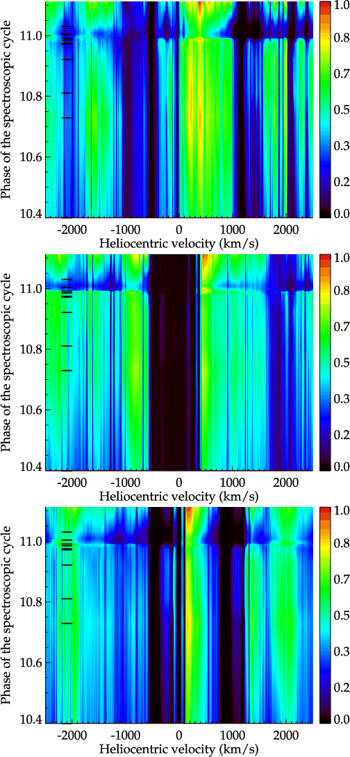of the spectroscopic cycle, but absent in spectra taken at