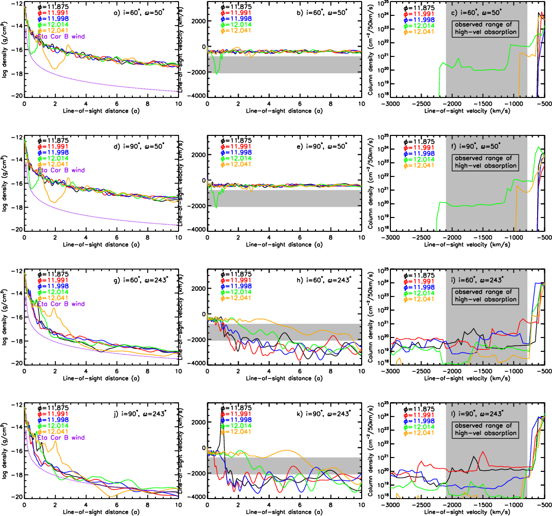 (Smith et al. 2003a; Pittard & Corcoran 2002; Davidson et al. 1995; Hillier et al. 2006,2001). Several observational studies have suggested that the wind of Eta Car A is latitude-dependent (Weigelt et al. 2007; Smith et al. 2003a; van Boekel et al. 2003), the polar wind having the higher densities and larger velocities. Smith et al. (2003a), based on H