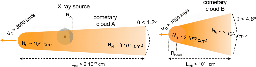 The cometary clouds ``head'' must have a size comparable to the X-ray source and must be moving