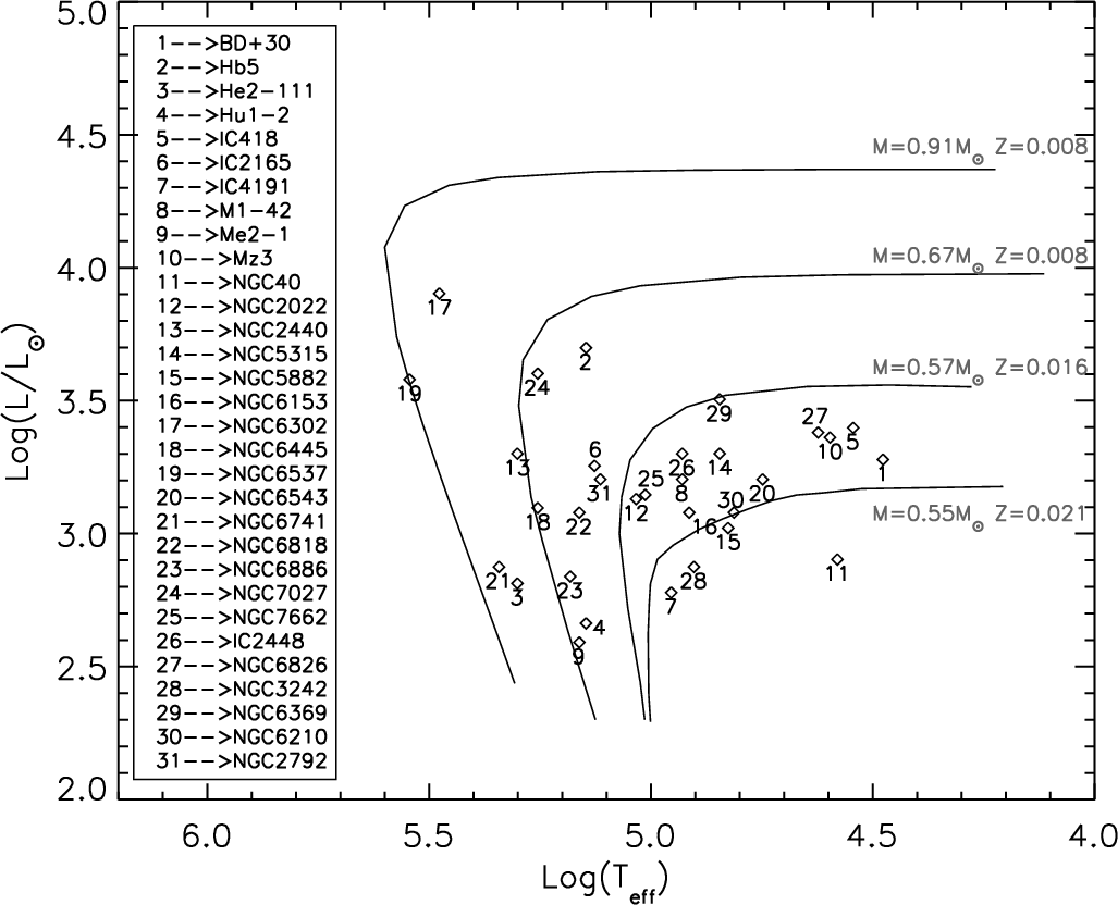fourth PN, M1-42, is difficult to compare with the theoretical curves because