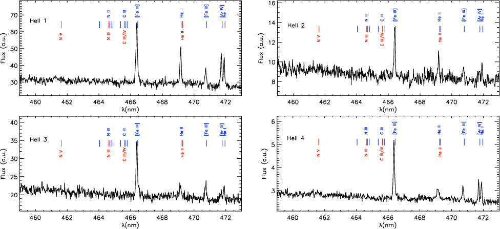 areas presenting W-R emission or extra nitrogen. The line profiles
