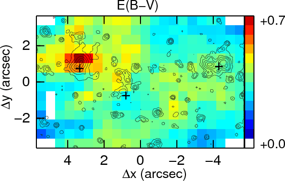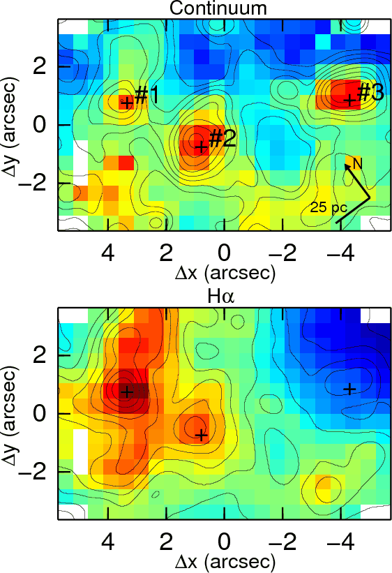 (Alonso-Herrero et al. 2004), and which are coincident with the double radio nebula detected at 1.3 cm (Turner et al. 2000).