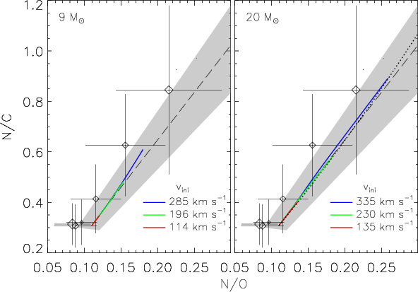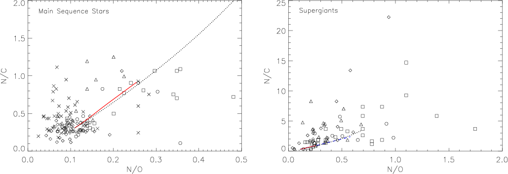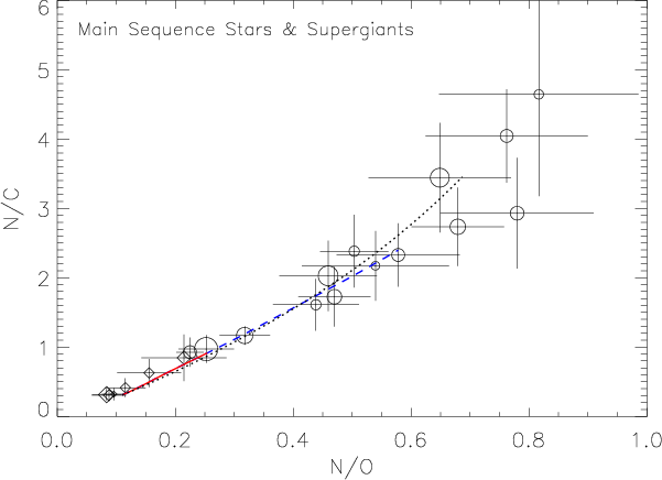Results. A tight trend in the observed N/C vs. N/O ratios and