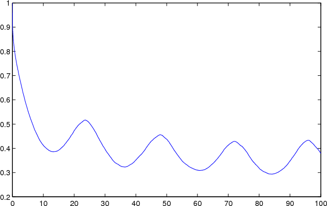 The origin drops sharply from 1 to about 0.8. It confirms the