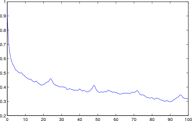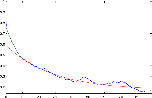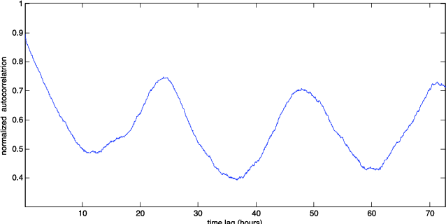 Only a little more than 3 months of data have been collected at this height so that the statistical robustness is not as good as it is at 8 m. Figure 6 shows the autocorrelation functionThis difference can be statistically explained by assuming that half the good seeing episodes at 20 m correspond to a boundary layer upper limit that goes down below 20 m but not as low as 8 m, the other half including situations when it will also spend some time below 8 m. The same 29-h exponential decrease at both altitudes is consistent with our model and its meteorological interpretation.